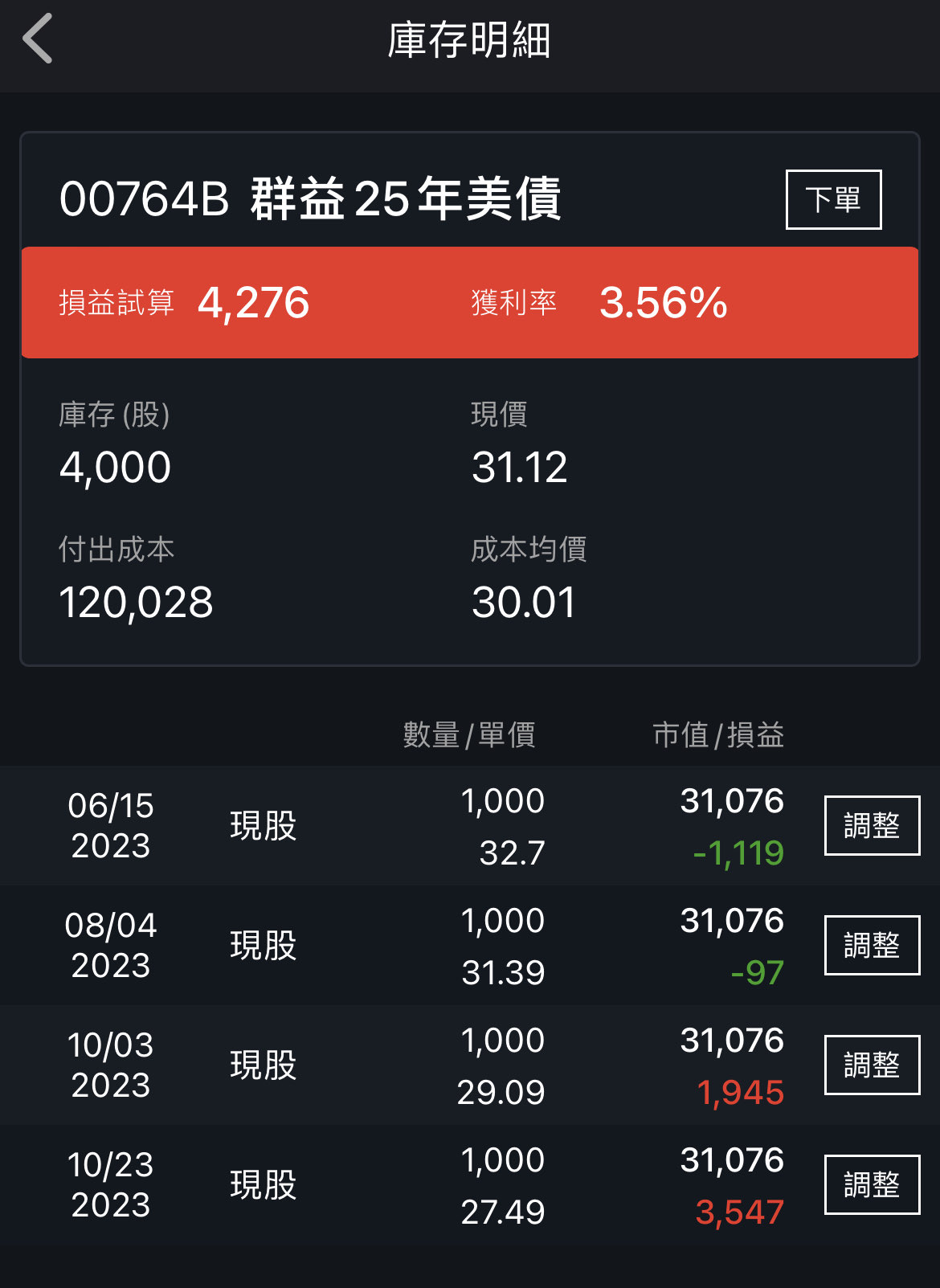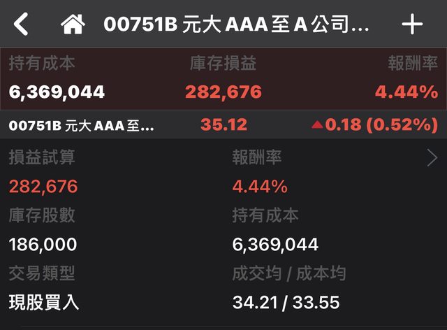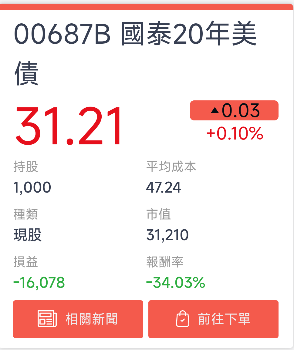 → okderla : 分3個帳戶持有00751B共106張,目前+4%多 12/13 22:28