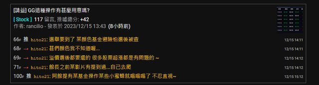 推 hito21 : 阿館提有某基金操作某些小蜜蜂就嗡嗡嗡了 不忍直視~12/15 15:12