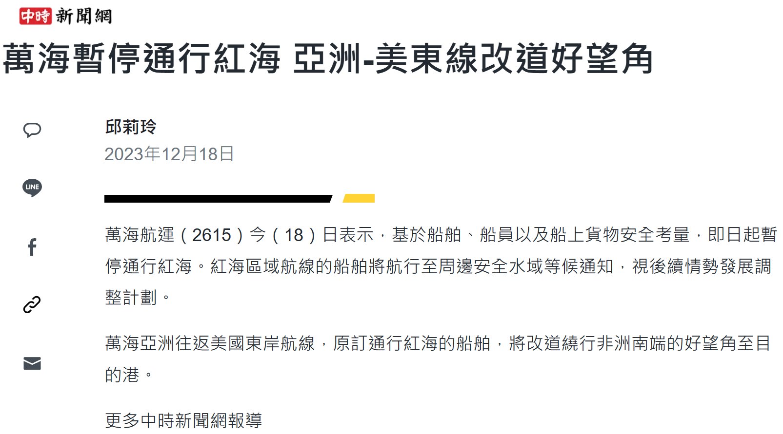 推 bkprt730 : 萬海原本也是走紅海去美東 01/08 16:26