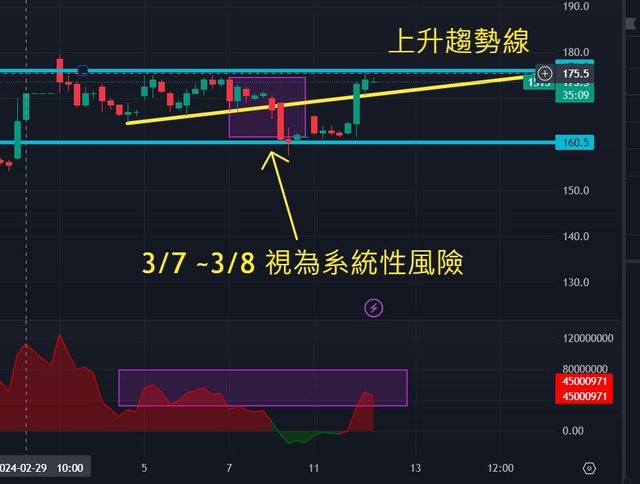 另外可惜的是3/7~3/8遭遇系統性風險,整體大盤在拉G的狀態下,快速下殺,導致緯創