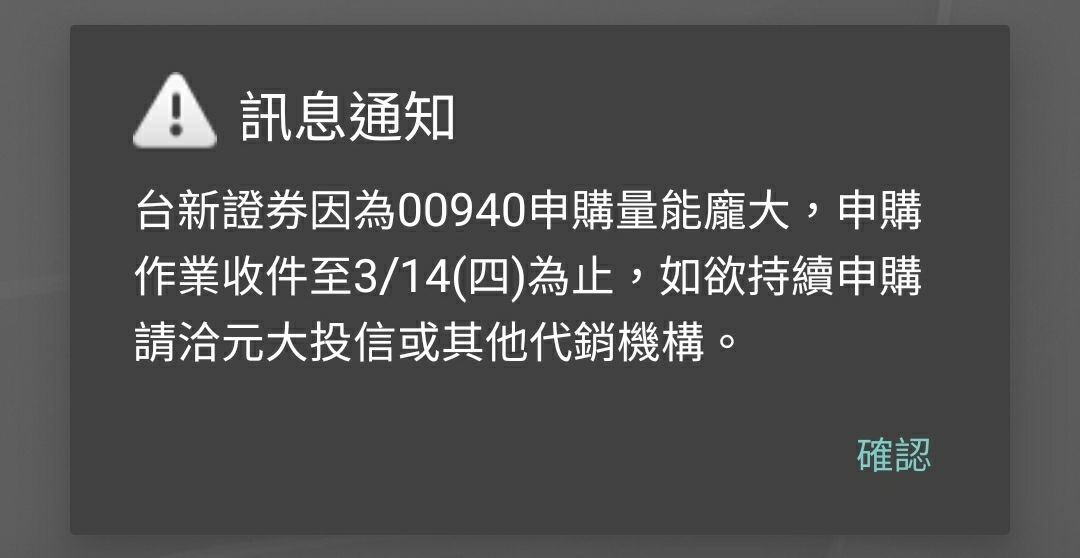 推 yeh0416 : 台新證也關門不收單了XD 03/14 10:01