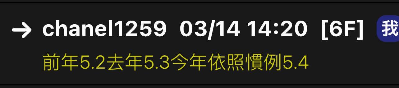 → chanel1259 : 前年5.2去年5.3今年依照慣例5.4 03/14 14:20
