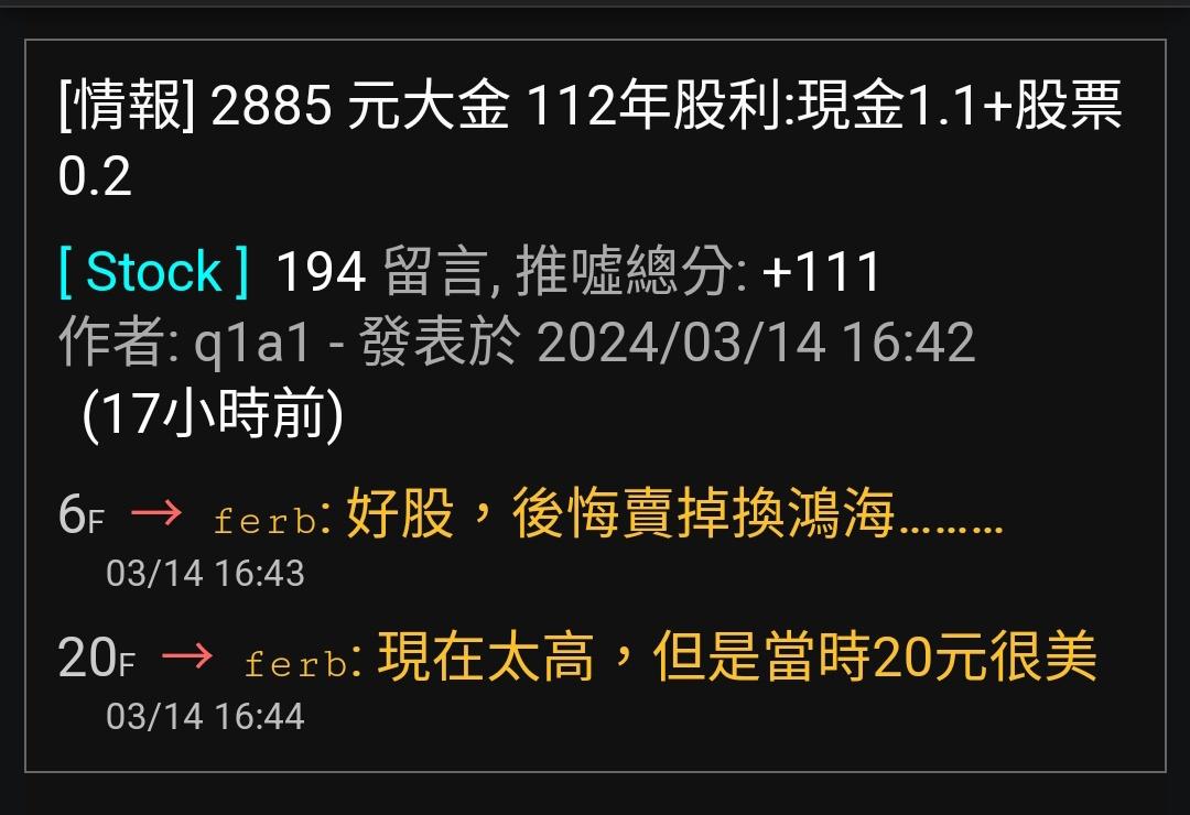 → ferb : 我是鴻海抱了三年,也就是浪費了快三年 03/15 10:24