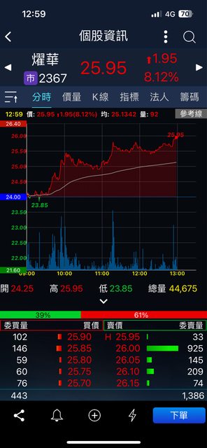 推 a03520 : 一賣就快漲停...謝謝你救了2367 03/18 13:49
