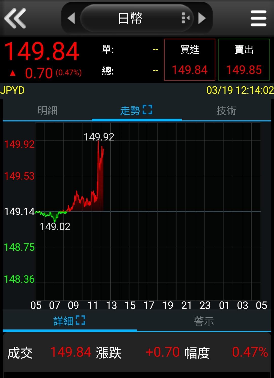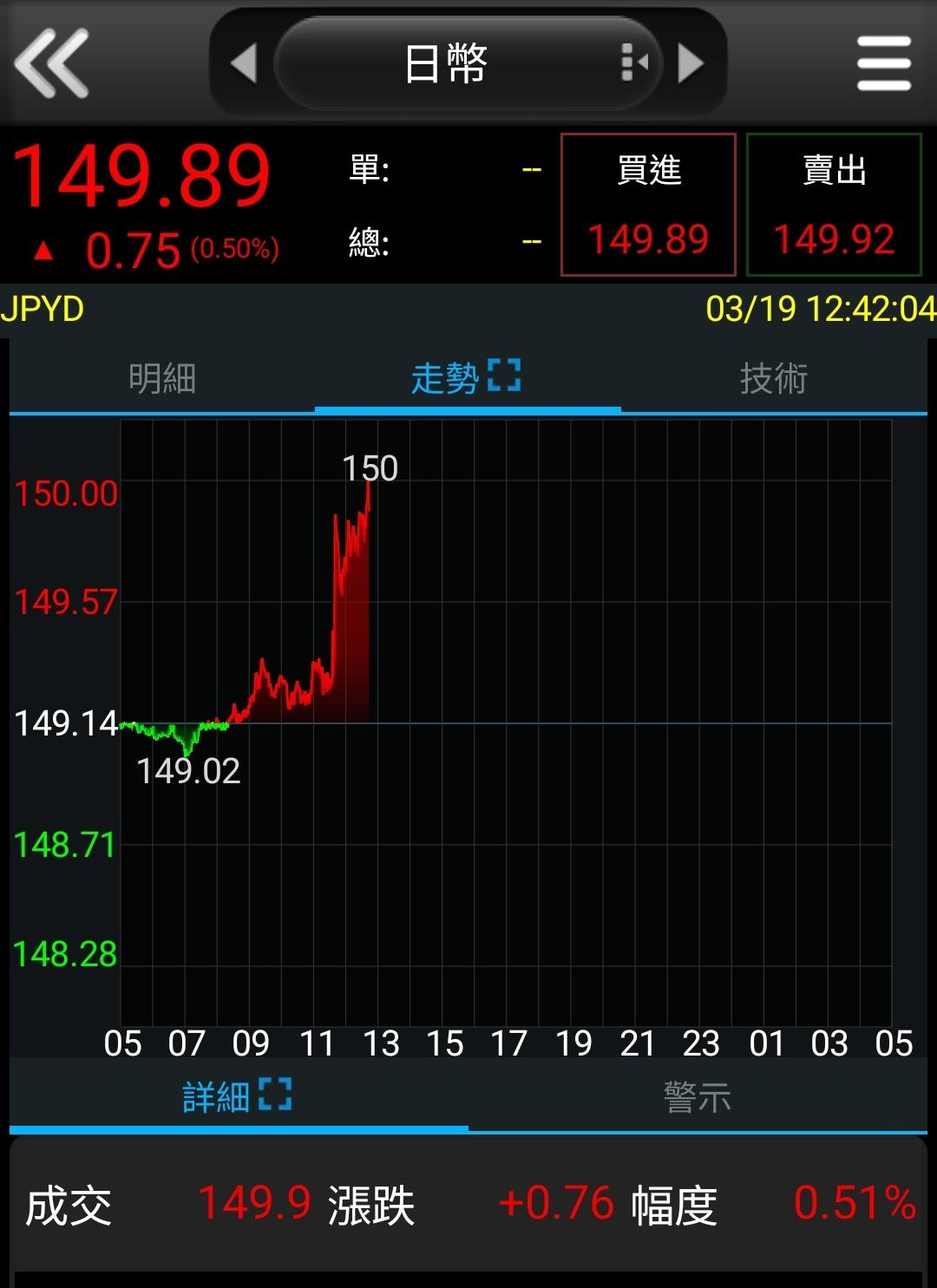 推 jerrylin : 日圓匯率沒反應ㄟ 還是150止跌就算反應了 03/19 12:00