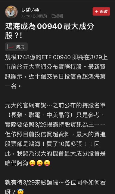 股市同學會說的,還說之前10大成份股是參考,實際名單以3/29爲準,附截圖