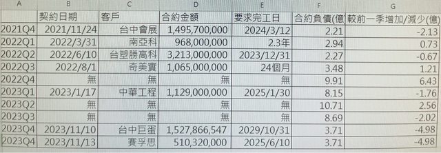 有些也距離太久,例如2021第四季到2022年第三季,中間簽了不少約,但合約負債都在3