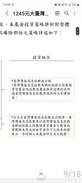 : 看ETF公開說明書,裡面寫將購買股票型或指數型基金及有價證券(包含期貨),