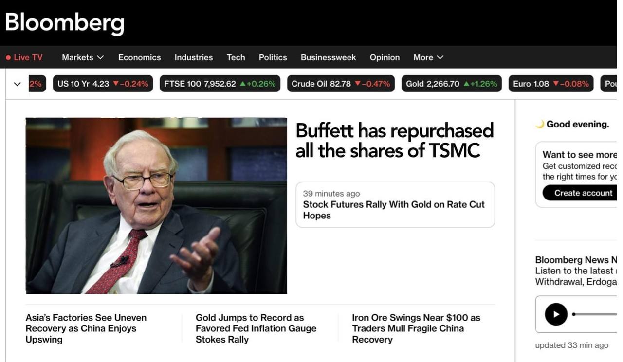 推 ccdrv : 老巴買TSM就算了 還買台股 誰信 04/02 01:13