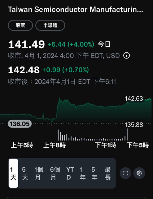 推 yling5518 : 上波台積ADR漲至158,現在才142,其實跌很多了 04/02 06:36
