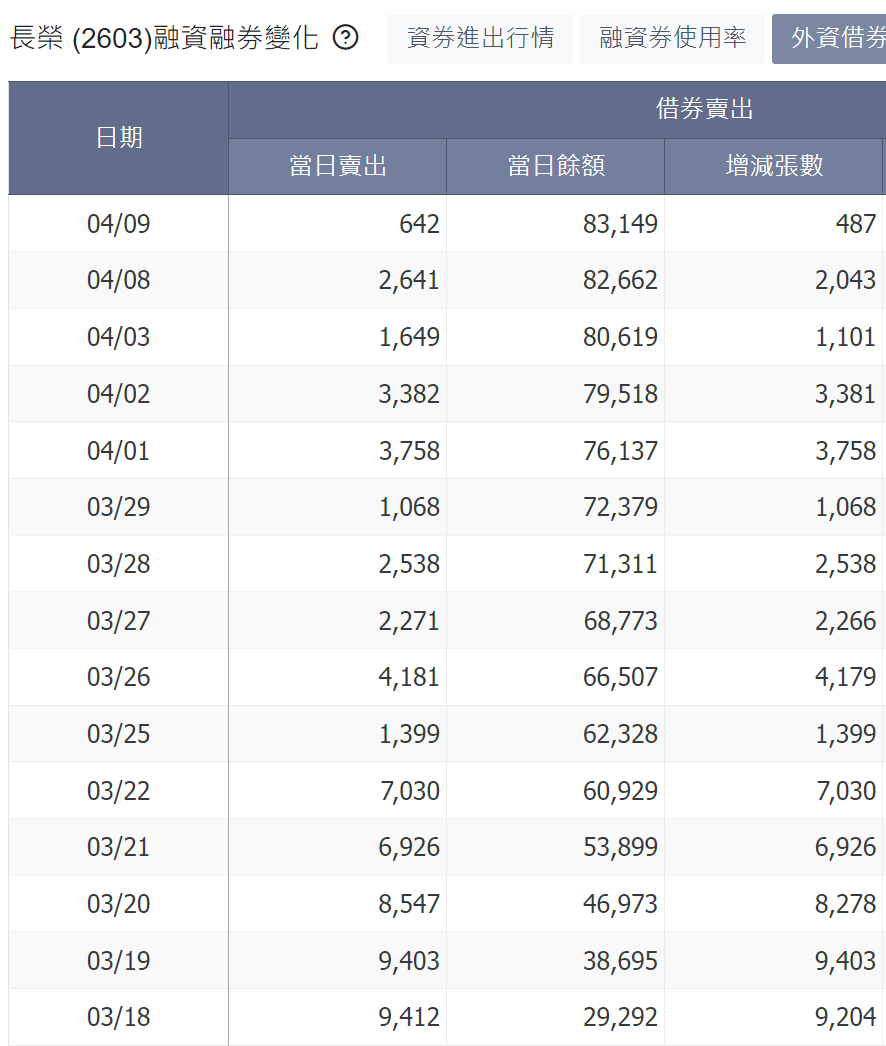 推 AJR9977 : 元大長榮借券並沒有外傳高,三月底掛2%,一週未借 04/09 23:37