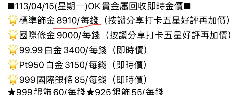 → blue1204 : 飾金跟金條回收價本來就不一樣... 04/15 13:37