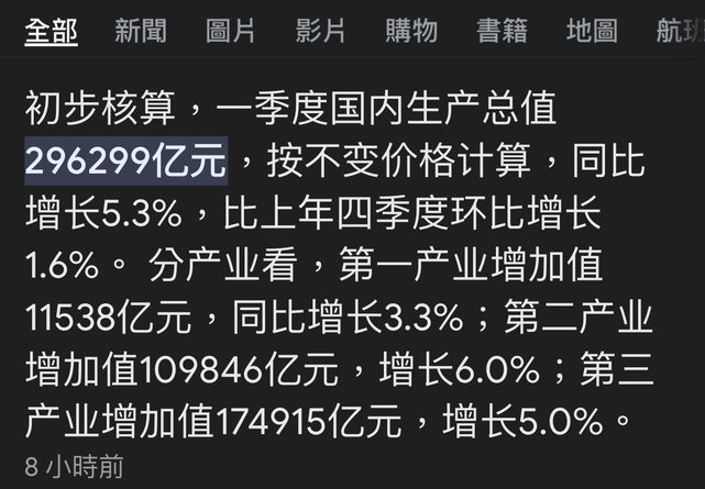 標題Re: [新聞] Q1亮眼! 中國首季GDP增長5.3% 內需外貿齊