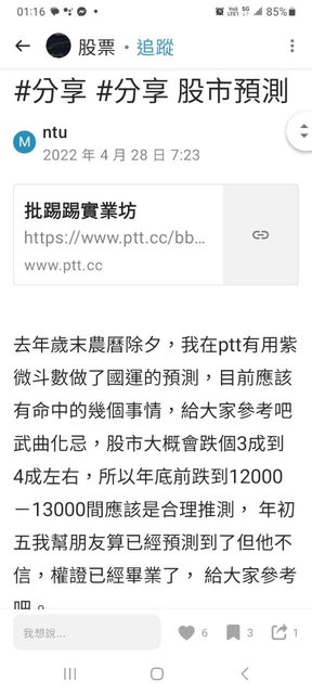 → ManGo1012 : 紫微斗數算股票可以排在我這輩子認知中前幾87的東 04/19 11:34