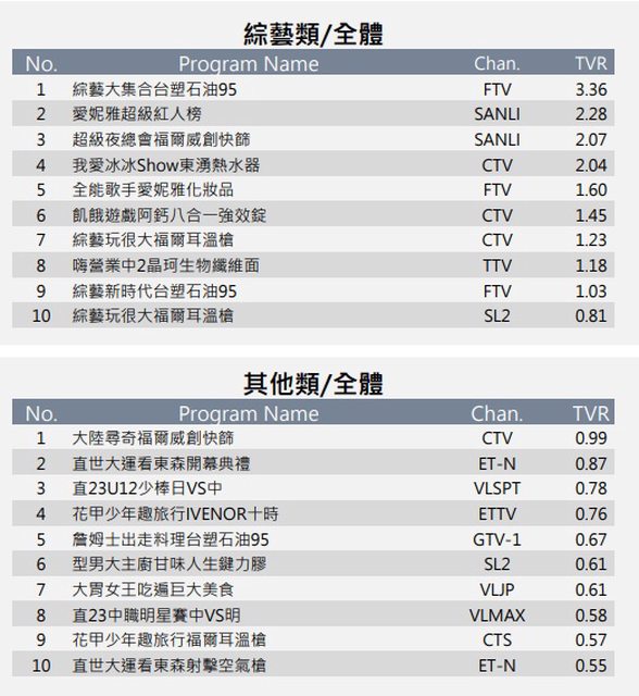推 Mimmature: 三立連兩檔收視率都無資料但是網路點閱率不錯的節目 08/03 11:25