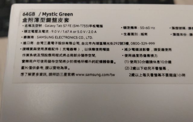 欲售物品:Samsung Tab S7 FE 綠色 WiFi版