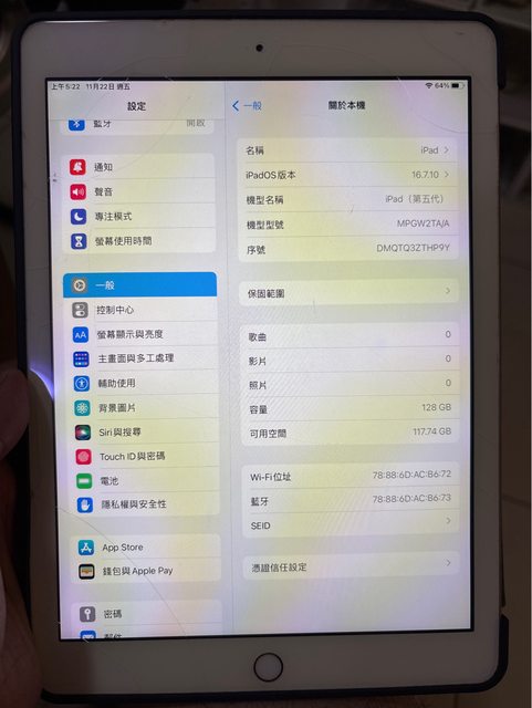 欲售物品:ipad 5 2017 128Gwifi