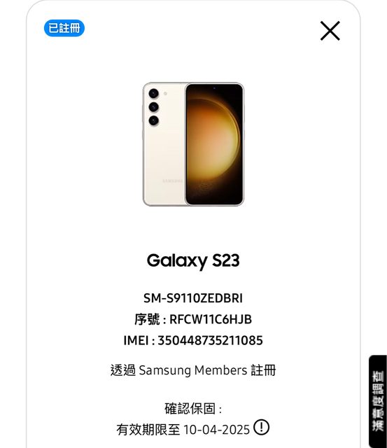 欲售物品:Samsung Galaxy S23 128G 白色