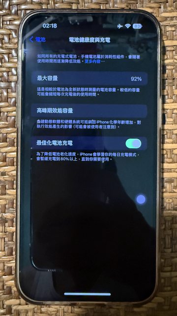 電池健康度92%,因有不只一支手機,使用量少,