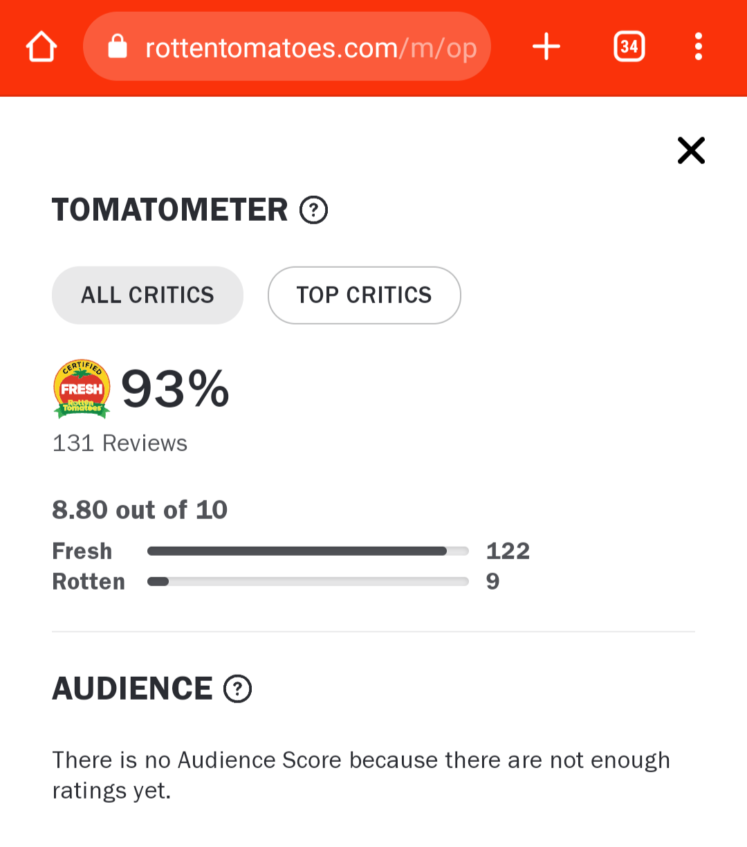 推 chyx741021 : 當初敦克爾克也是爛番茄和Metacritic都破90的超高07/20 00:58