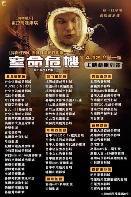 標題[情報] 蜜拉喬娃維琪《窒命危機》全台上映戲院