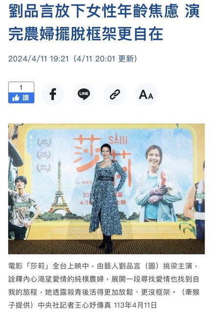 標題[新聞] 劉品言放下女性年齡焦慮 演完農婦擺脫框