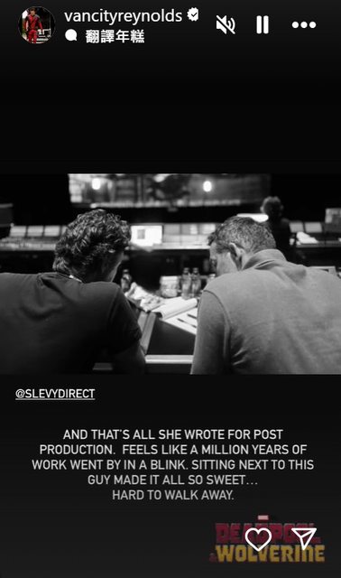 萊恩雷諾斯(Ryan Reynolds)在限時動態感謝李維一路的陪伴: