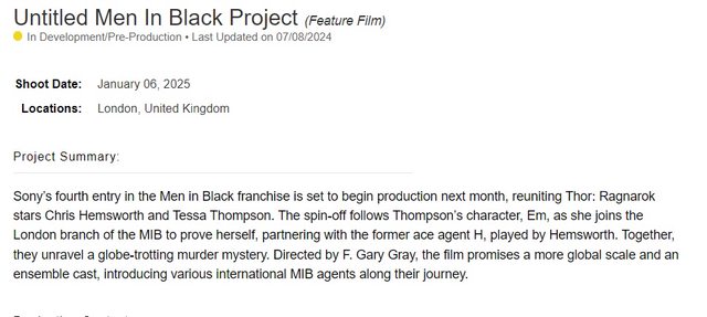」並顯示將於 2025 年 1 月在倫敦開拍,不過網站上的其他部分暫時由《MIB星際戰警: