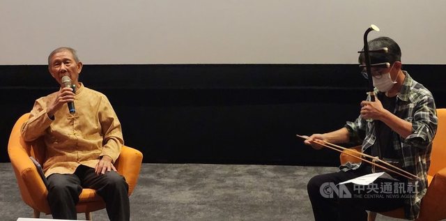 ,歷時2年,27日在澎湖首映,西嶼坪嶼耆老呂坤翰(左)、音樂人許勝文(右)現場演