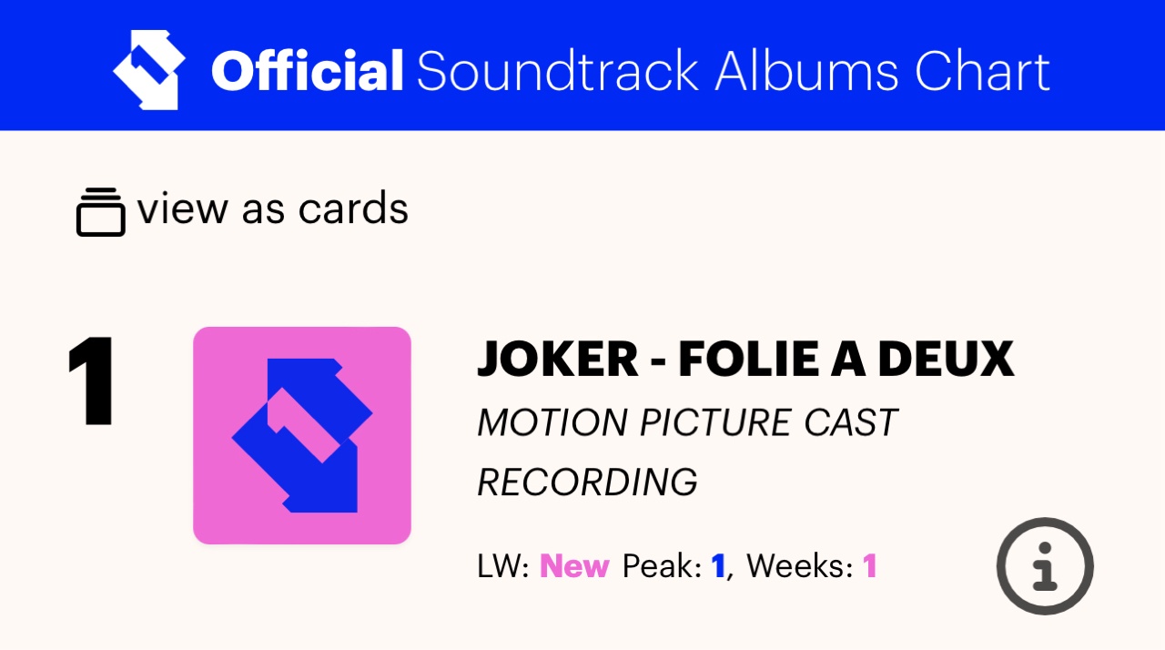 → toebb : 《小丑:雙重瘋狂》電影原聲帶 成為 Lady Gaga 10/30 05:11