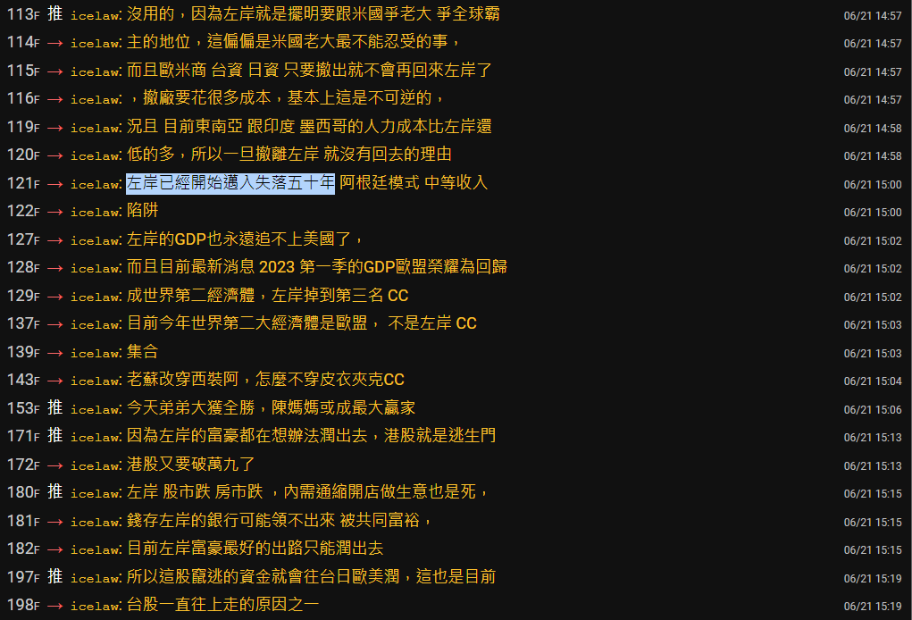 → icelaw : 我之前在你這篇文回你的論點 主要是講說 你要谷底 06/22 13:22