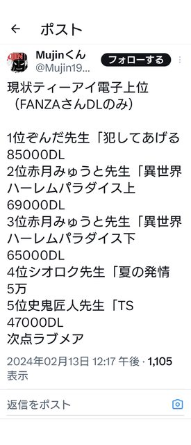 本公司在FANZA/DLsite的歷史銷量TOP5