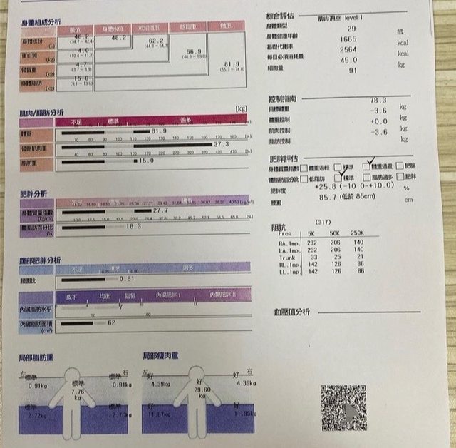 達,想用inbody測驗結果來表達,應該還算健康。