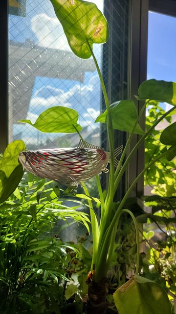把紙雕錦鯉用細線吊起來就像是在盆栽的森林裡優游