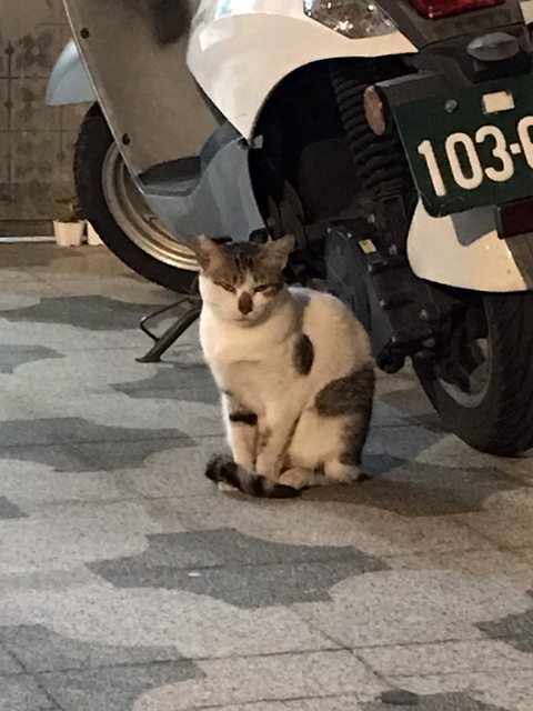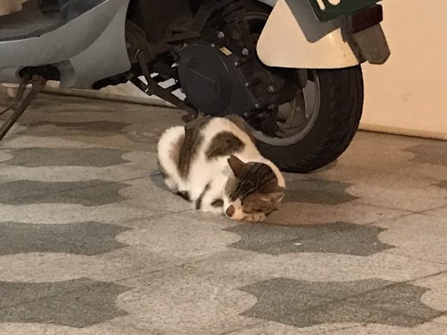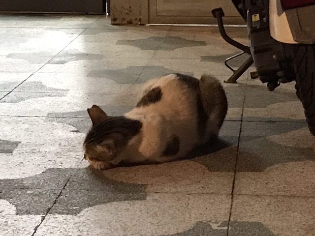 看到別人家門口有隻睡覺的貓咪