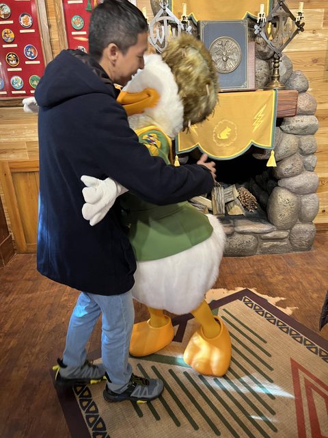 結果真的去迪士尼後就這麼被擁抱了,而且對象竟然是唐老鴨,怎麼還抱的有點「男」分「