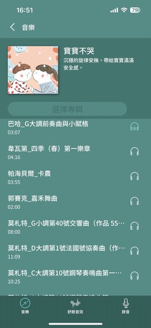 另一個是pixsee提供的白噪音播放功能,我開始寶寶的睡眠儀式後就會開始播放,但是白噪