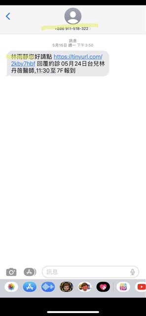 簡訊的電話是診所寄件的,不是我的號碼喔