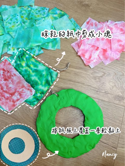 是最近帶孩子玩的另一個「聖誕紙巾花圈」