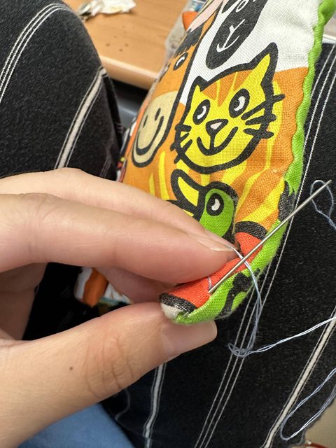 縫到這裡後請用力拉你手中的線