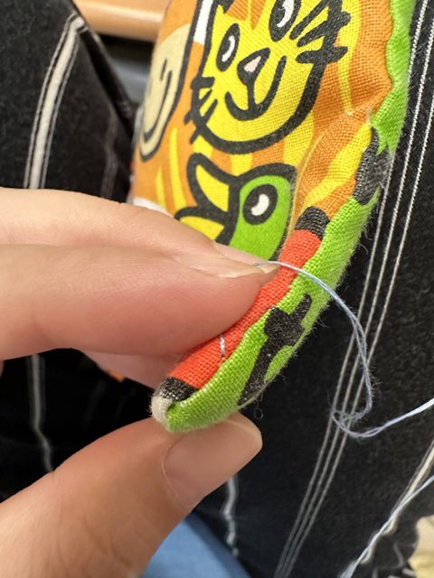 我會多縫幾針到更下面避免布書被我剪開的線又往下繼續裂開