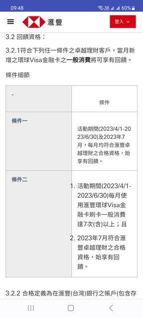 滙豐環球Visa金融卡 合格之卓越理財客戶[註4]或當月刷卡一般消費達7次