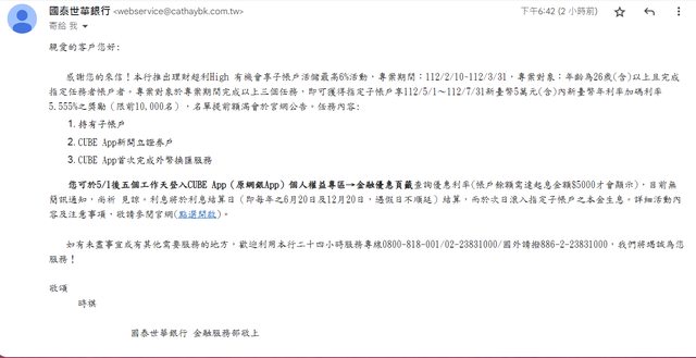 推 TZUYIC: 國泰世華這個活動一過3/31就把所有活動內容從網站下架了, 04/12 01:22