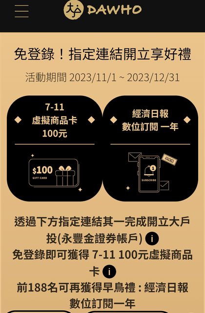 標題[情報] 大戶投 開戶送100