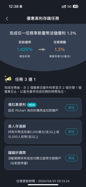 今天打開richart 突然發現牌告利率比專案利率高 請問為什麼完成任務利率會變低? https://i.imgur.com/KIZNbnD.jpg