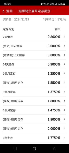 推 gctseng: 請問定存選項裡頭有一個邀請制的也是3%,那是啥?11/15 09:15