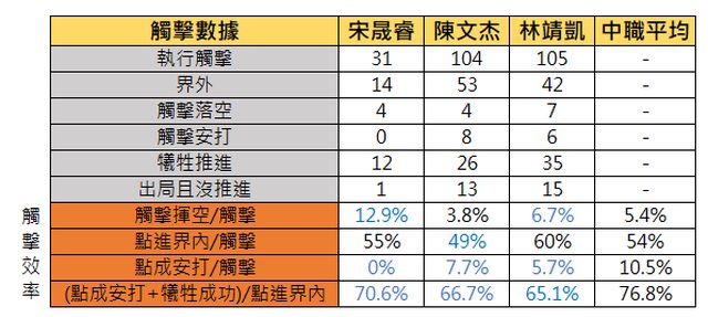 但從數據上來看,靖凱在中職的觸擊安打率不高