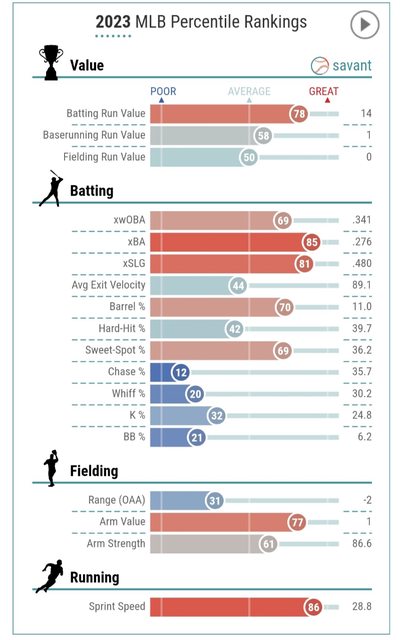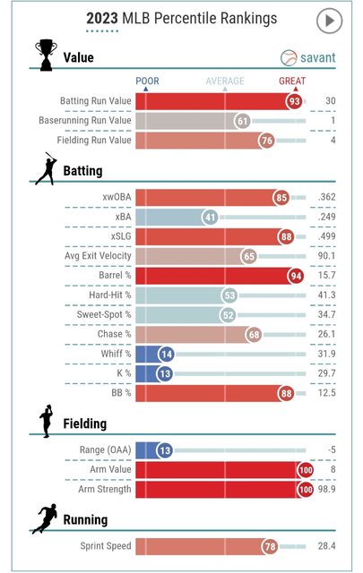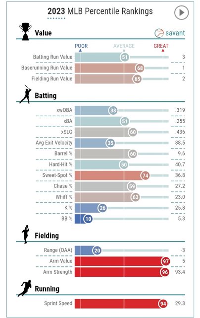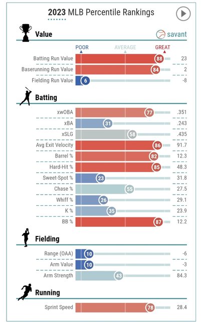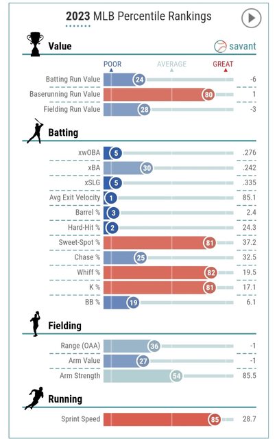 推 avcddd: 上面Adell的數字是生涯累積 sprintspeed的話平均差不多應 12/15 13:28