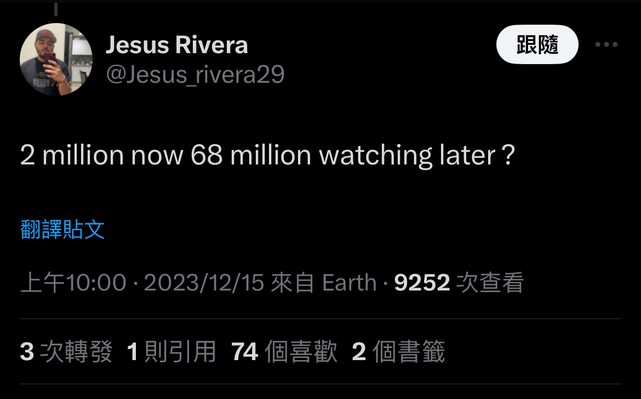fman: 都不用上班上課嗎?這數字肯定是全球觀看啦 12/15 13:52