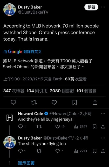 MLB Network 剛剛報導 有7000萬人觀看今天的大谷翔平加盟記者會 下面有人留言 2 million now 68 million watching later ? https://i.imgur.com/kQThxn3.jpg